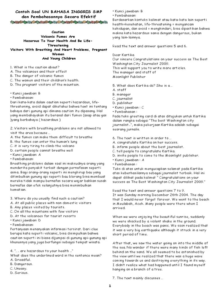 Dsn buku bank soal ujian nasional bahasa inggris smp 1000 soal latihan. Top score bahasa inggris untuk smp kelas 7 8 9 materi dan latihan soal lengkap onet . Berikut ini adalah soal soal hots unbk mapel bahasa inggris kelas ix smp. You prove yourself the underlined work has the closest meaning to. Contoh soal ujian sekolah us bahasa inggris ini untuk membantu belajar peserta didik kelas 9 smp dalam menghadapi ujian sekolah tahun .